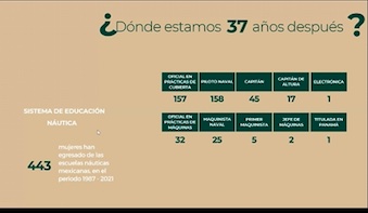 Mire debe reconocerse que la Coordinadora General de Puertos de México, la capitana Ana Laura López Bautista, hizo su mejor esfuerzo en su presentación con lo que tiene a su alcance. Convocó en la última semana una encuesta para ubicarlas, información que de por sí ya deberían existir en Fidena pero queda claro que no se lleva ese control. Y le digo esto debido a la lectura que se deprende de las estadísticas que presentó.: 443 mujeres egresadas en 37 años. Datos que en sí son muy reveladores pues las variables de las gráficas son como los cuchillos de doble filo con que se rebana un filete. Por un lado pueden sacar una jugosa presa; pero por el otro le pueden infringir una profunda cortada: señala que dentro de las egresadas hay 17 capitanes de altura; desafortunadamente en 37 años no se logró formar pero ninguna doctora, Y es que mucho de la falta del impulso y desaliento se debe a la ausencia de programas de apoyo: becas de calidad que bien pudiesen haber solventado cuando funcionaba el Conacyt con una visión mas abierta, pero no fue así ya que nunca en las pasadas administraciones le interesó al Fidena ningún vínculo con este organismo. Pero otro factor importante es la monetización de la carrera marítima que alimentó durante mucho tiempo la leyenda de los cuantiosos salarios que se pagaban en la Sonda de Campeche. Y ni modo el dinero mató aspiraciones mayores. 17 se quedaron en el lindero profesional que no deja de ser un gran mérito, pero pudieron estar ese día ofreciéndonos alguna investigación académica mas allá de la estadística.