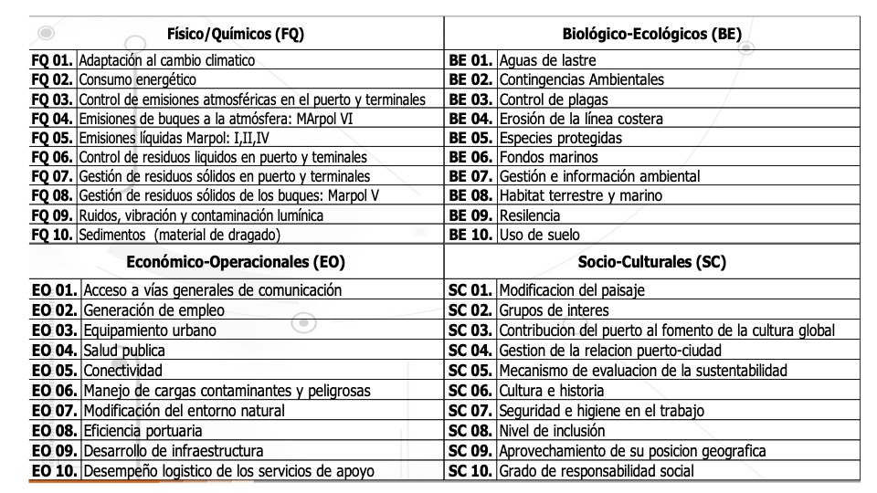 Pero déjeme decirle también que el camino se va estrechando. Ya en el ámbito de la investigación académica podemos partir por rutas mas cortas hacia un plano terrenal y los investigadores han concluido que si una empresa o puerto o Asipona quisiera ser sustentable, es decir, ejercer su derecho empresarial sin comprometer el futuro, solo habría de hacer suyos estas seis premisas: 1. La Gestión de Riesgos “de adentro hacia afuera”2.-La gestión del conocimiento de los impactos «de afuera hacia adentro» 3.Relación con los grupos de interés clave, 4. Diferenciación estratégica:5.-Innovaciones y transformaciones del modelo de negocio, 6.- Gestión del cambio: desarrollo de capacidades dinámicas y talento de recursos humanos desarrollo de capacidades dinámicas: Si usted es observador podrá ver que ninguna habla del ambiente pues obviamente está implicto que lleva el ingrediente de los seis objetivos del desarrollo sustentable (ODS). Si no pues está incompleto. Ahora ¿cual es problema con este compromiso que obliga a cumplir con los objetivos del negocio y a la vez con la sociedad y el ambiente; pero lo mas importante es como que cumple con las leyes y tratados internacionales? Sin duda son las mediciones en tiempos breves. Sin grandes estudios. ¿Qué indicadores deberé controlar para presumir que un puerto o una ciudad es sustentable? ¿Cómo habríamos de convertir lo que es harto difícil en fácil? Bueno, le cuento; dadas estas circunstancias, entre 2016 y 2020 un grupo de investigadores tutelaron mi tesis doctoral que precisamente trataba ese tema: la creación de un sistema de indicadores para evaluar la sostenibilidad en los puertos mexicanos. Fueron cuatro años de trabajo de campo hasta que diseñamos un sistema de 40 indicadores que abarcaban los impactos en cuatro esferas: Físico química, Biológico/ Ecológicos, Económico operativos y socio culturales. Estos a su vez fueron-cada una- subdivididos en cuatro sub indicadores. O sea que para tener un panorama completo un puerto debe medir 160 rubros. Estos a su vez fueron medidos seleccionando una metodología científica que se conoce como Rapid Impact assessment Matrix (RIAM) que fue desarrollada por el investigador Christopher Pastakia en el Instituto Acuático de Dinamarca. Esta es bajo un enfoque multidisciplinario que permite realizar un análisis sistemático haciendo uso de datos cualitativo-cuantitativo y de esa manera crear un registro transparente y permanente. Este sistema fue validado en seis puertos de México (Manzanillo, Ensenada, Tampico, Tuxpan, Veracruz y Altamira) y obtuvimos bajo este criterio 40 registros de cada puerto en los diversos rubros los cuales podrá